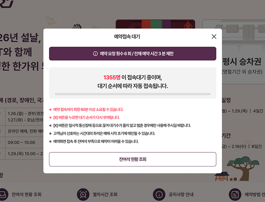 명절 승차권 예약을 위해