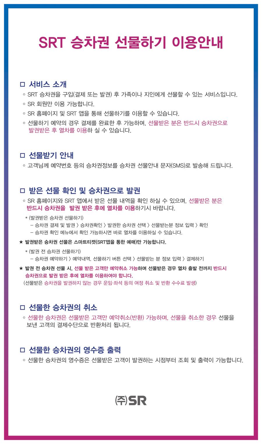 SRT 승차권 선물하기 이용안내